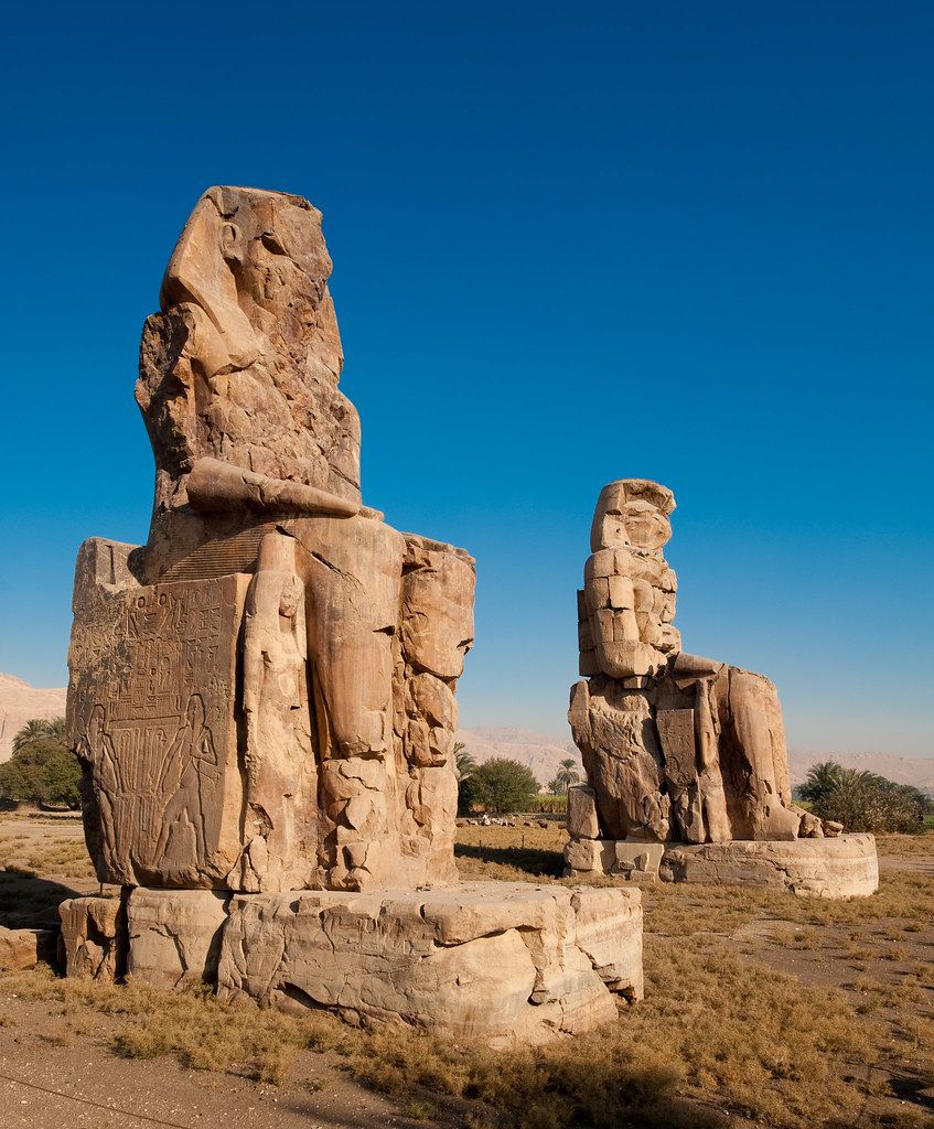 - Colosos de Memnón → Dos enormes estatuas del faraón Amenhotep III en la orilla oeste de Lúxor.